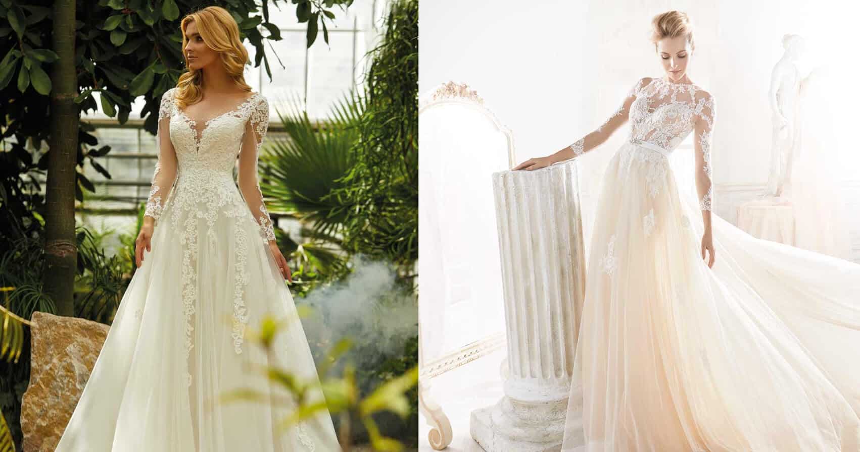 Per un matrimonio in autunno/inverno una parte molto importante che determina lo stile del vestito sono le maniche. Lunghe fino al gomito o ai polsi regalano al vestito e alla silhouette una forma veramente sensuale.